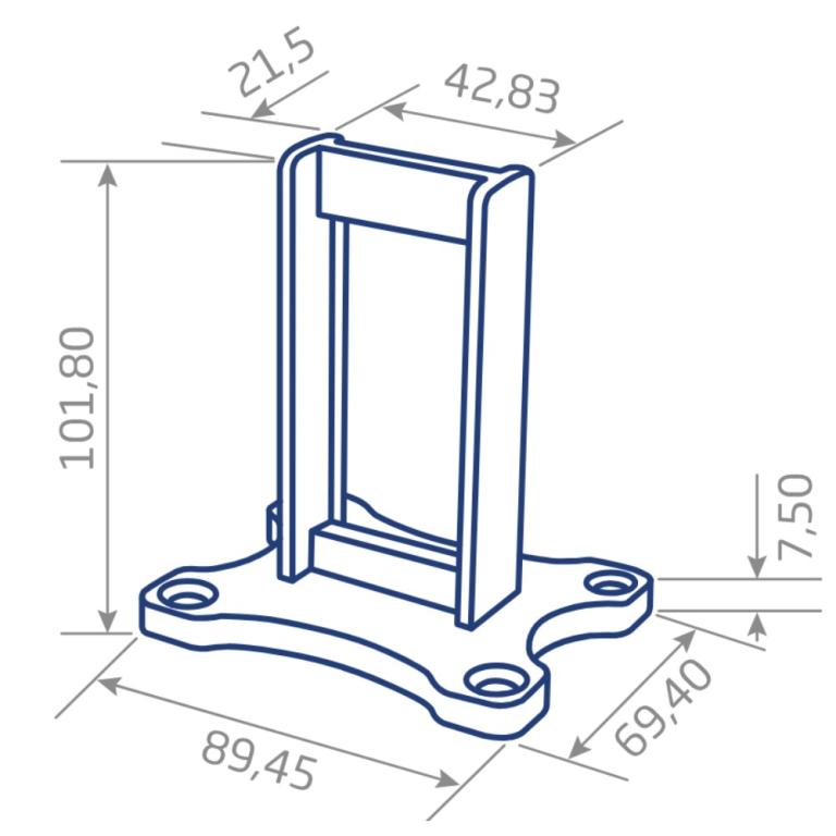 O design das sapatas contam com a resistência incomparável do alumínio fundido. A estrutura onde o perfil se encaixa é fundida a base, ou seja, uma peça única e maciça. Característica que difere de outras marcas que utilizam parafusos para união das partes.